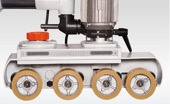 Posuw z 4 rolkami oraz z płynną regulacją prędkości. Urządzenie zapobiegające wypadkom, zapewniające bezpieczne i prawidłowe podawanie elementów klasycznych maszyn do obróbki drewna takich jak: grubościówki, piły, frezarki i nie tylko.
